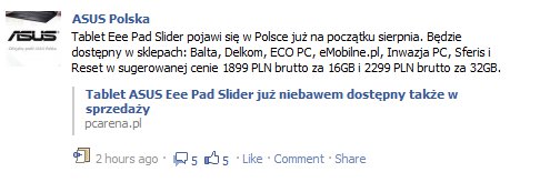 Kolejny tablet z rodziny Eee Pad – Slider – pojawi się już niebawem w Polsce – donosi Asus Polska za pośrednictwem oficjalnego profilu na Facebooku. I choć premiera w Wielkiej Brytanii została przesunięta na jesień, w naszych krajowych sklepach produkt pojawi się już na początku sierpnia. Ceny utrzymują tendencję zaproponowaną przy okazji premiery Transformera.