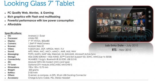 Jednym z takich urządzeń jest Dell Looking Glass. Znamy już kilka parametrów starszego brata Streak’a.