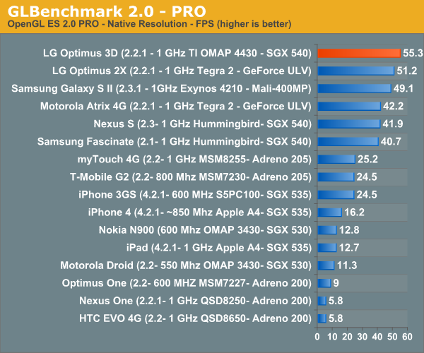 Całe zawody wygrał LG Optimus 3D z TI OMAP4, który posiada znaczną przewagę technologiczną nad konkurencją. Jego GPU SGX 540 pracuje z szybkością 300 MHz (standardowo 200 MHz, np. w Galaxy S) oraz obsługuje dwukanałową pamięć LPDDR2, a także technologię MPE (Media Processing Engine).