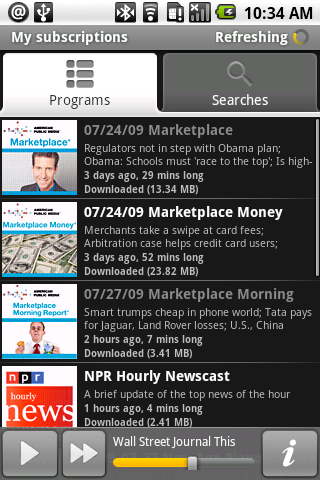Listen od Google Labs wprowadza podcasty do urządzeń z Androidem. Aplikacja pozwala na wyszukiwanie, subskrypcje, ściągnie i streaming podcastów. Poprzez subskrypcję program będzie tworzyć spersonalizowany audio-magazyn z najświeższymi treściami. Ta wersja Google Listen posiada dostęp do tysięcy anglojęzycznych źródeł.