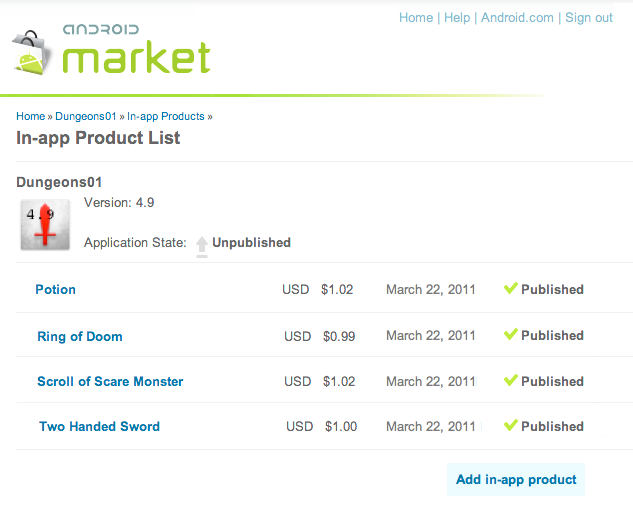 In-App Billing, czyli usługa płatności w aplikacjach, zostanie udostępniona w przyszłym tygodniu. Wczoraj rozpoczęły się testy dla deweloperów, którzy mogą stworzyć, w konsoli, katalog produktów, które będzie mógł dokupić użytkownik aplikacji.