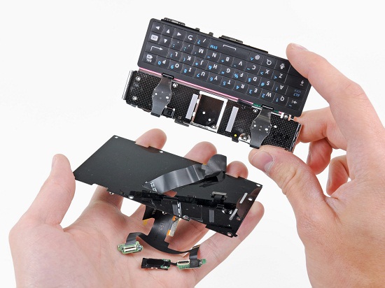 Portal Ifixit rozłożył Motorolę Droid 2. Tak samo jak w przypadku X, dużo części, w tym procesor, zostało ukryte pod blaszkami.
