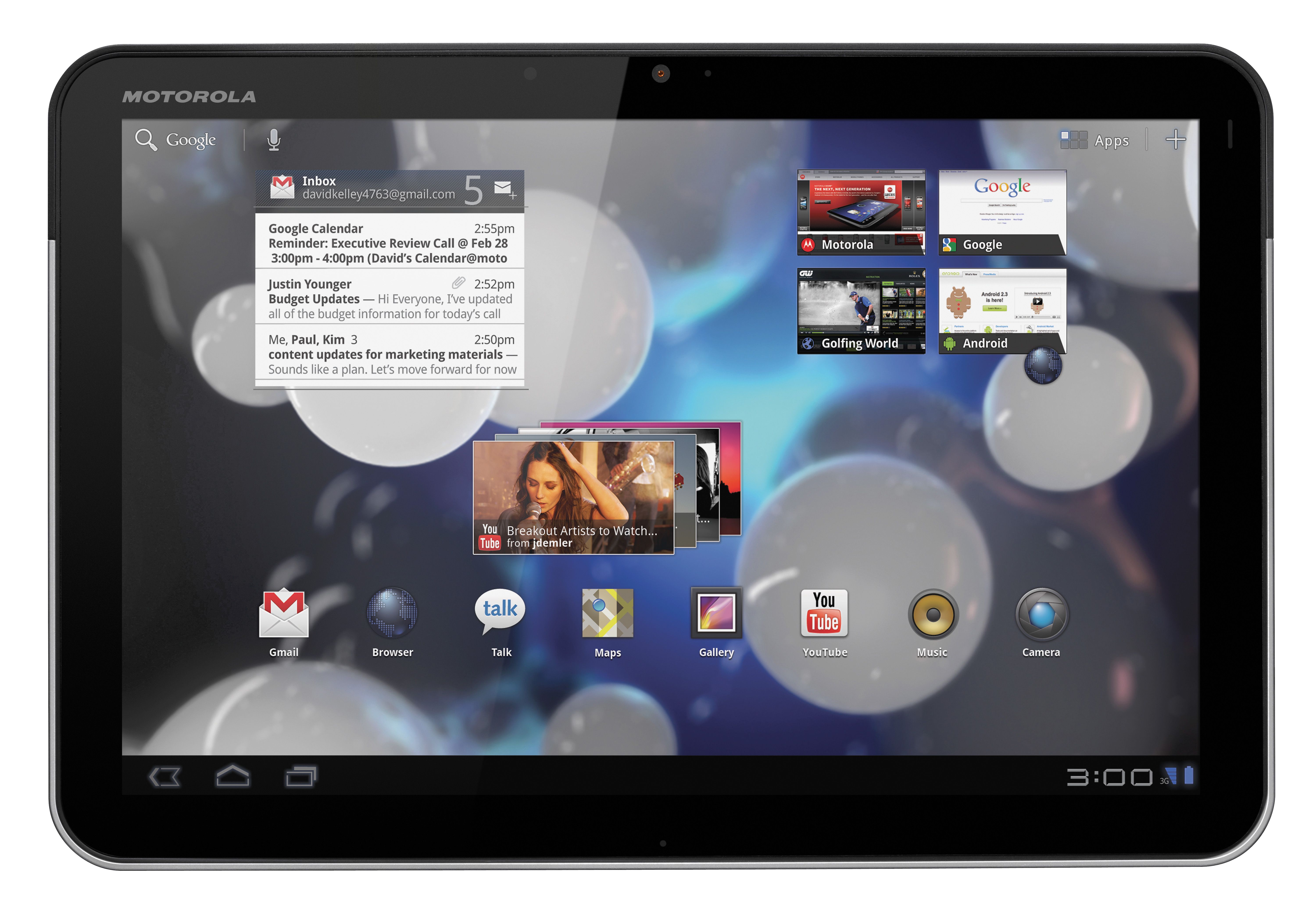 Tablet Motorola XOOM™ wyposażony został w 1GHz dwurdzeniowy procesor i 1-gigową pamięć RAM, co zapewnia wysoką wydajność pracy. Dzięki platformie operacyjnej Android 3.0 (Honeycomb) możemy korzystać z takich funkcji jak obsługa widgetów, wielozadaniowość, przeglądanie stron w zakładkach oraz dostosowanie ekranu do preferencji użytkownika. Wszystko to wyświetlane jest na 10,1–calowym panoramicznym ekranie HD o rozdzielczości 1280×800, który zapewnia jeszcze bogatsze wrażenia wizualne oraz bardziej precyzyjny i wyrazisty obraz. Wbudowane łącze HDMI umożliwia projekcję