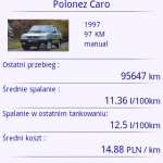 3. Wyświetlanie statystyk pojazdu – Aplikacja umożliwia oglądanie statystyk swojego pojazdu bez potrzeby logowania się nas stronę internetową. Przedstawione informacje czytelnie prezentują, czy pojazd użytkownika funkcjonuje poprawnie a średnie wartości kosztów utrzymują się na właściwym poziomie. Aplikacja w łatwy sposób pozwala kontrolować koszty i spalanie pojazdu.